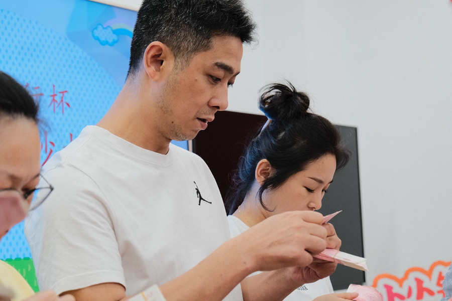家长们也纷纷参与点钞大赛。(朱俊洁 摄)