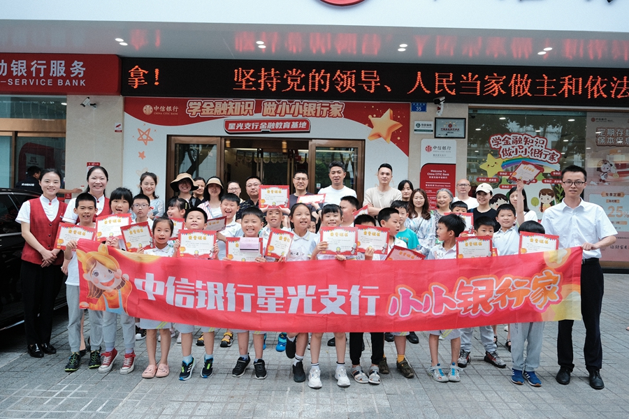 近日,重庆两江新区星光学校二年级学生走进中信银行重庆星光支行,体验“学金融知识,做小小银行家”活动。