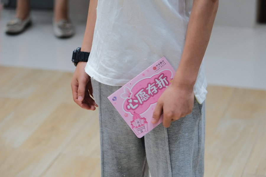 心愿存折是中信银行为学生们打造的“积分册”,在活动过程中可积累分数并兑换奖品。(朱俊洁 摄)