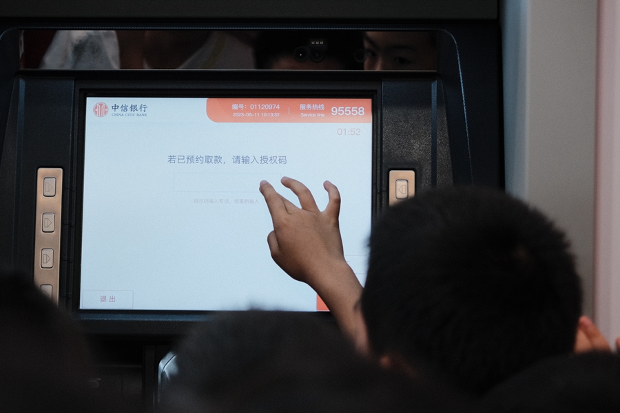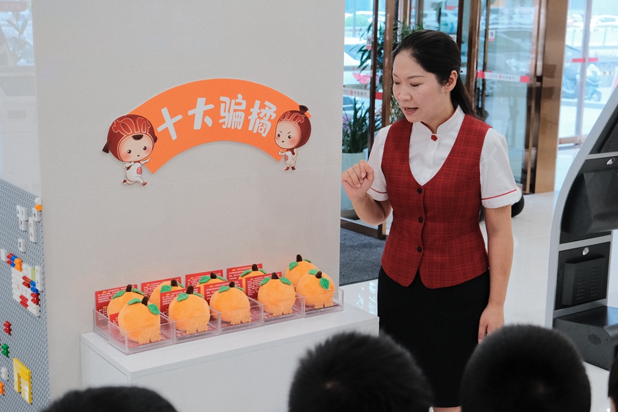 现场,20余名小学生在银行工作人员带领下到银行网点内,参加巡游金融城、晨会初体验、点钞小能手、财商大比拼等环节,沉浸式体验银行运营模式,增强反诈常识,学习如何辨识假币。