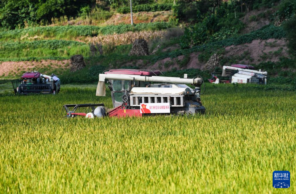 这是8月13日在永川区吉安镇金门村拍摄的水稻机械化收割作业现场。新华社记者 王全超 摄