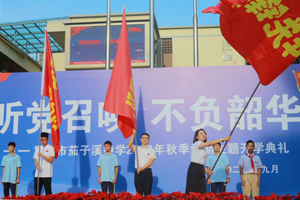 9月1日,开学当天,重庆市茄子溪中学以“听党号召 不负韶华”为主题开展了开学典礼。学校党委书记亲切对话学子,用身边鲜活的故事讲好“开学第一堂思政课”,以此厚植学生家国情怀,凝聚学校发展力量。