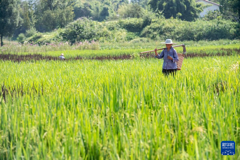 9月7日,稻农行走在稻田间。新华社记者 唐奕 摄