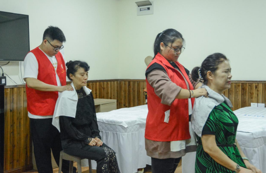视障群体进行盲人按摩服务。(熊鹏 摄)