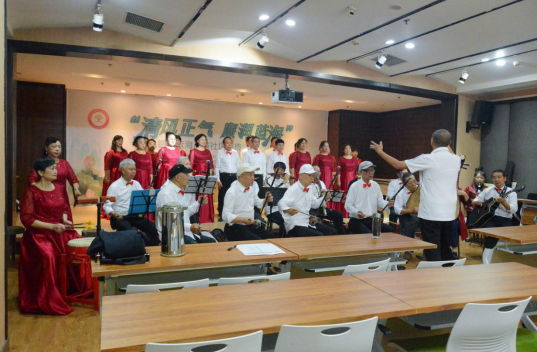 合唱团正在“渝馨家园”多功能活动室排演节目。(熊鹏 摄)