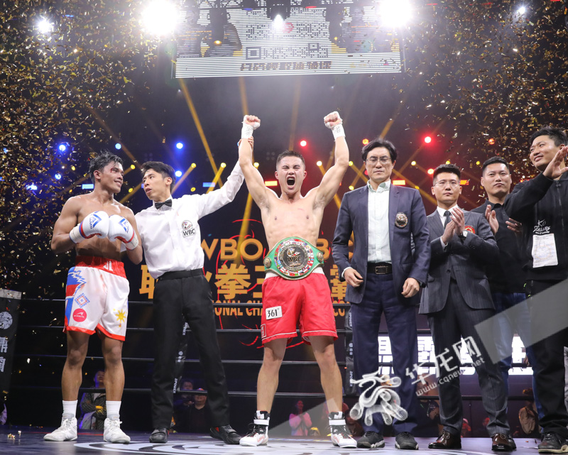 11月25日晚,2023中国·重庆WBO(世界拳击组织)/WBC(世界拳击理事会)世界职业拳王争霸赛在重庆渝北体育馆落幕,中国拳击选手刘文松(红裤)战胜菲律宾拳手乔尼·劳伦特(白裤)斩获WBC亚洲超羽量级正式拳王金腰带。菲律宾拳手赛前职业战绩为8胜0负1平,未有败绩。