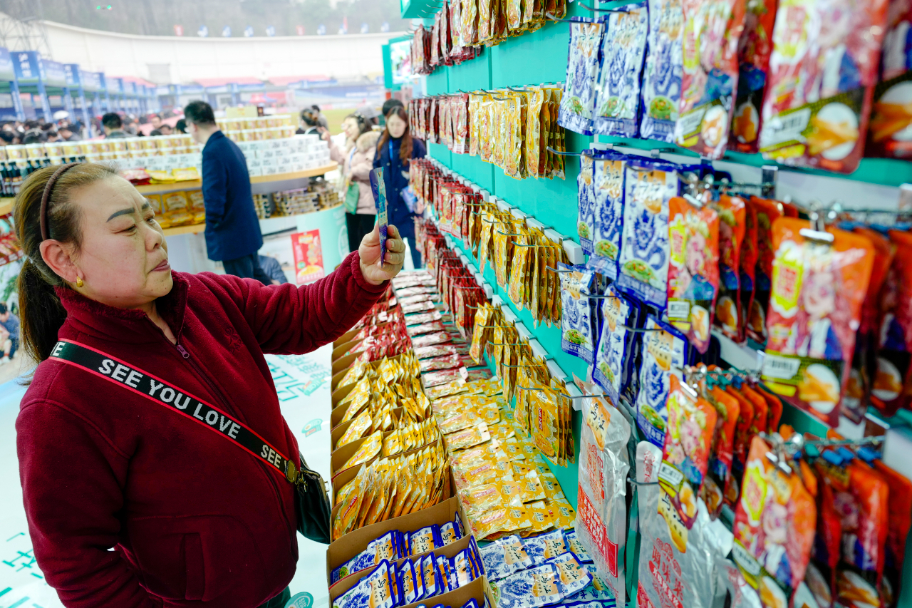 一名消费者在挑选琳琅满目的涪陵榨菜产品 刘潺 摄