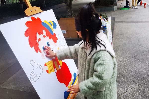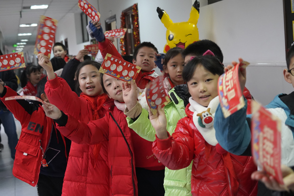 孩子们开心地展示手中的游园会集章卡。