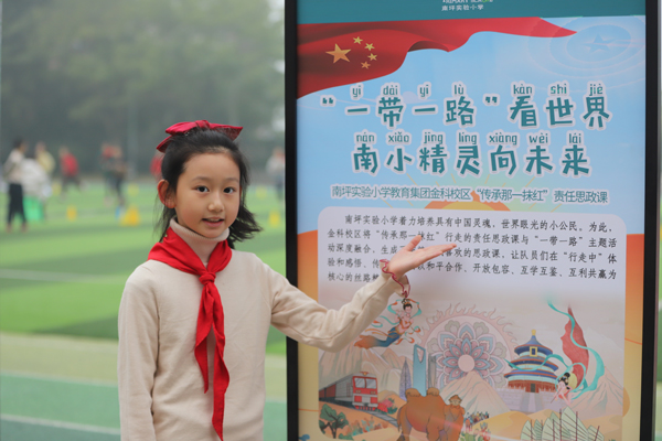 南小金科校区的孩子们遨游在世界知识的海洋中,他们在主题班会课上学习“丝路精神”,透过视频感受艺术与创新,聆听讲解共创合作与未来。