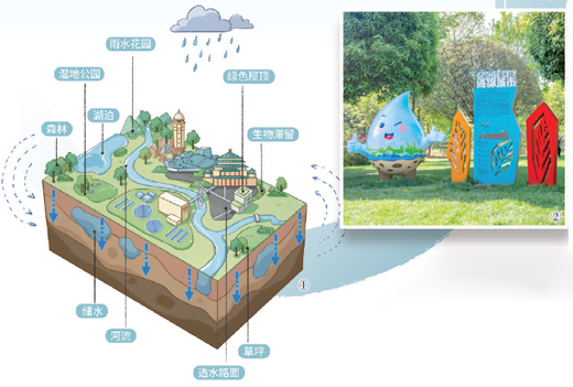图①:重庆海绵城市建设示意图。 重庆市住建委供图 图②:重庆市渝北区中央公园海绵城市雨水花园示范点。 罗红霞摄(人民视觉),版式设计:张丹峰