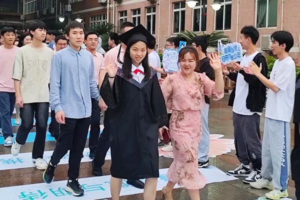 在父母的陪伴下,全体高三毕业生来到毕业典礼活动现场。