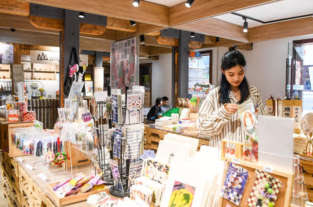 游客在山城巷文创店内挑选商品。新华社记者 王全超 摄