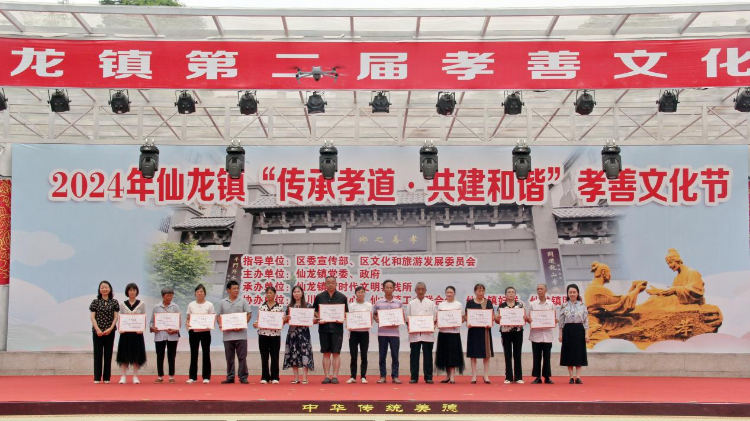 据介绍,这是永川区仙龙镇举办的第二届“孝善文化节”。仙龙镇在永川区率先试点打造乡村互助养老点,以养老互助为核心建设村民驿站,优化积分制增设“好人好事奖”,去年以来共评选“五星文明户”、“示范文明清洁户”等1600户,获评2023年市级乡村治理示范村镇,孝善文化在仙龙镇蔚然成风。