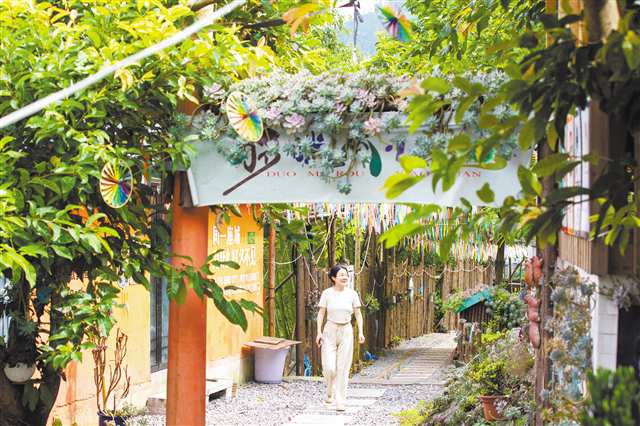 “不仅有各种各样的多肉,还有盆栽植物、大小一样的农家石磨,崖壁上的休闲步道,风景也很不错。”