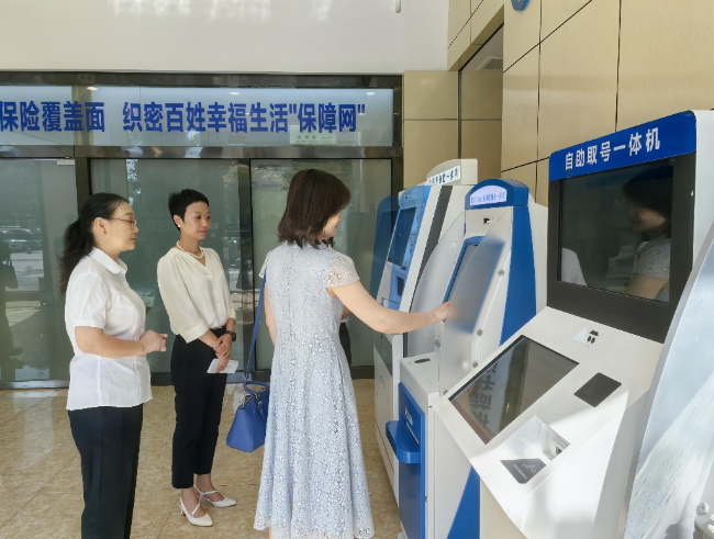 市民正在社保中心自助服务区办理业务。