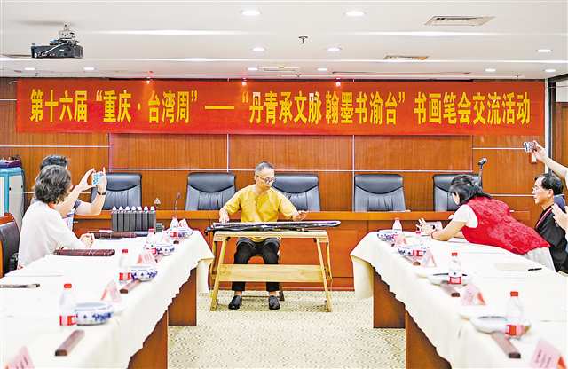9月8日,渝中区广场大厦,第十六届“重庆·台湾周”——“丹青承文脉翰墨书渝台”书画笔会交流活动开幕。记者 齐岚森 摄/视觉重庆