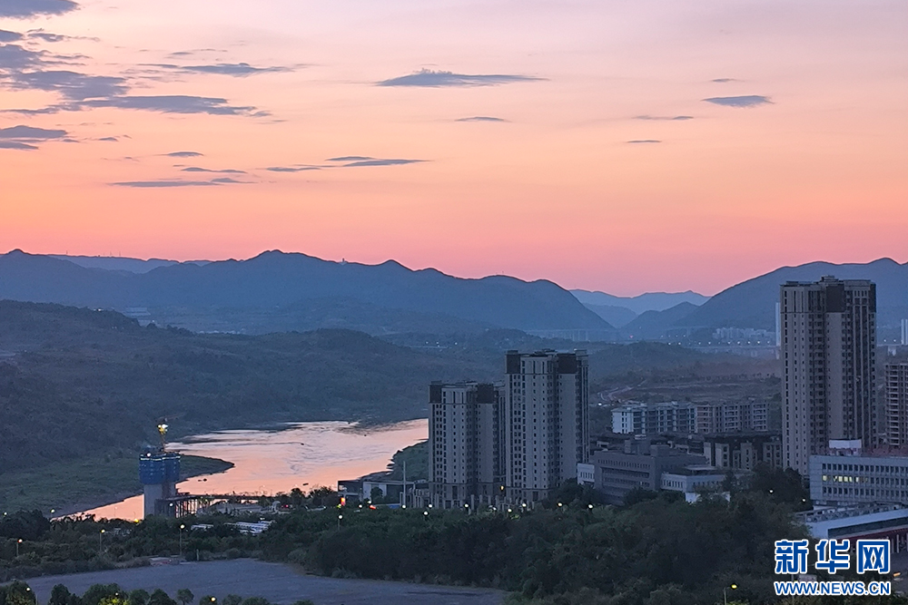 美丽晚霞映照下的嘉陵江湾,浪漫值拉满。新华网 韩梦霖 摄