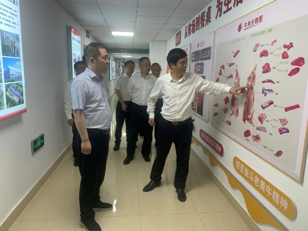 重庆三峡银行党委书记、董事长刘江桥(左1)调研牛肉加工企业。
