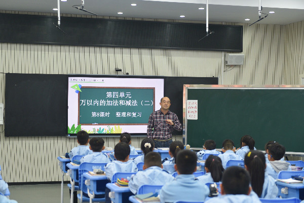 在课例示范中,高新区骨干教师苏国泽将理论与实践完美融合,首先简明扼要地引导学生联系旧知,为复习课做铺垫;接着围绕“万以内的加法和减法(二)”启发学生自主架构有关加法、减法和解决问题的知识结构,并通过回顾课本,协同学生一起归纳加法和减法的计算方法与计算道理,进一步深化知识体系,引导学生明晰数与运算的本质皆指向“计数单位”;再通过有层次的练习帮助学生巩固本节课内容,深刻理解数与运算的一致性。