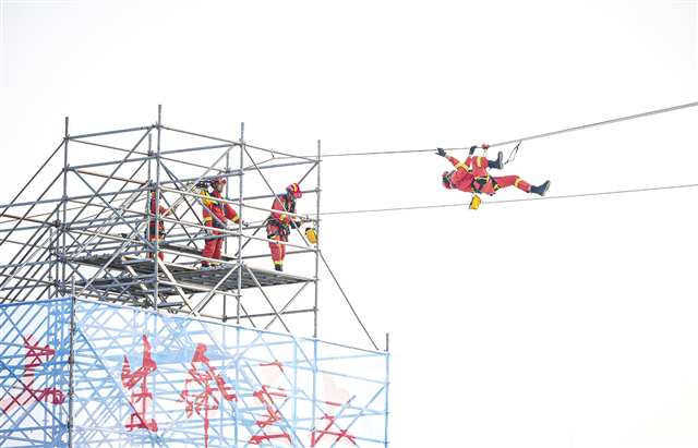 11月5日,救援队伍在进行绳索救援科目展示。
