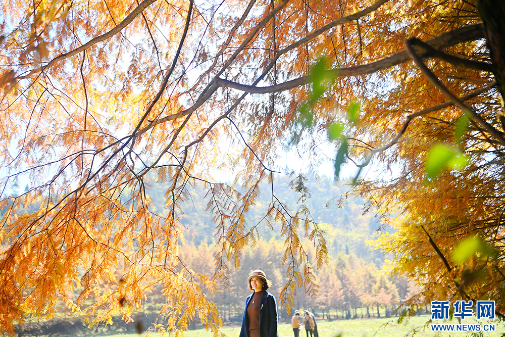 当地的水杉林吸引众多游客来此拍照打卡,感受大自然的神奇魅力。新华网发(陈碧生 摄)