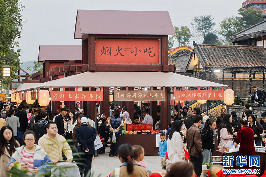 11月15日,设在大足区荷棠夜市与昌州古城的“渝味360碗”美食集市人流如织。新华网发(受访单位供图)