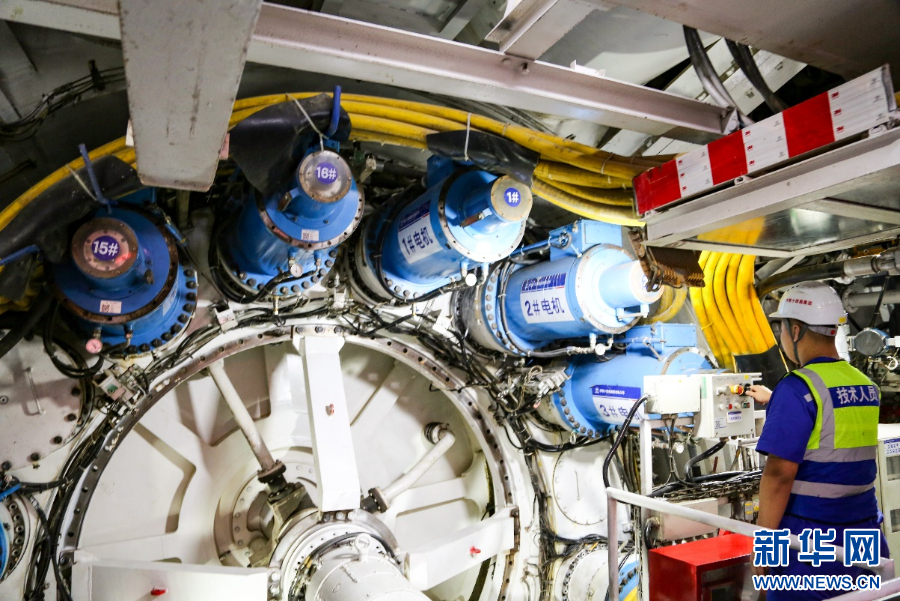 中铁十四局管理人员根据设备点巡检清单对盾构机主驱动及刀盘系统进行详细检查。新华网发(重庆市应急管理局供图)