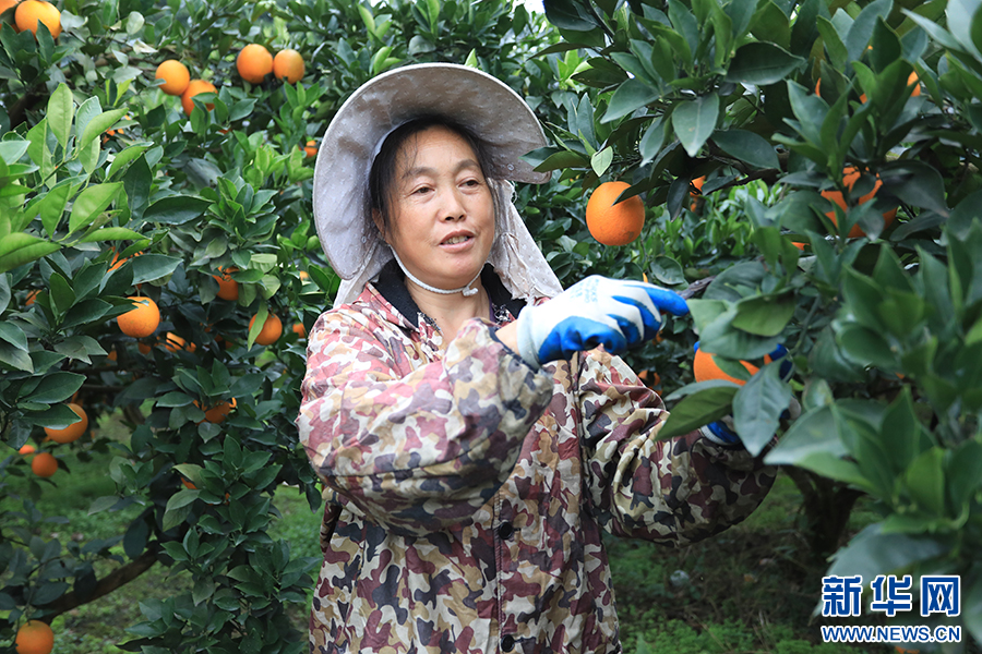 一位果农正在采摘脐橙。新华网发(胡程 摄)