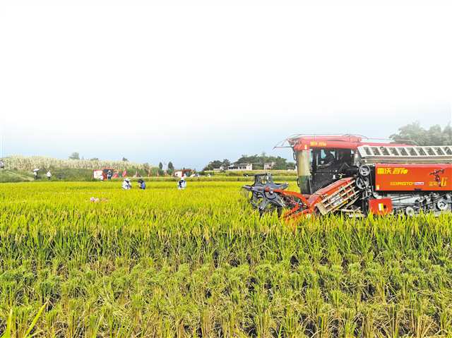 8月下旬,合川区隆兴镇玉河村,机手正在抢收水稻。