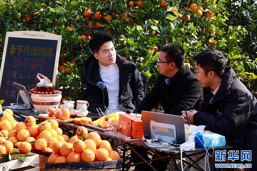 12月18日,董宇辉来渝为奉节脐橙直播带货。新华网发(重庆市商务委供图)