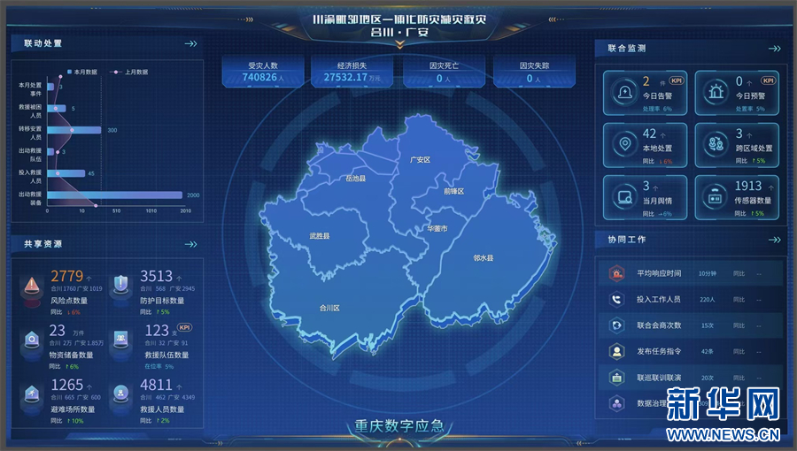 “川渝毗邻地区(合川·广安)一体化防灾减灾救灾”综合应用驾驶舱。新华网发