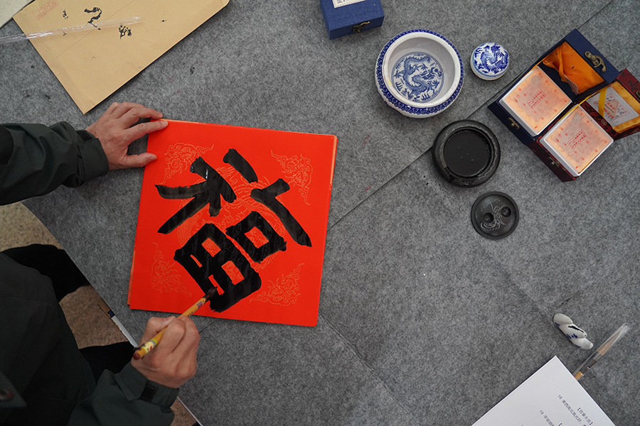 “笔墨飘香送新春”活动现场写成的“福”字。邵以南 摄