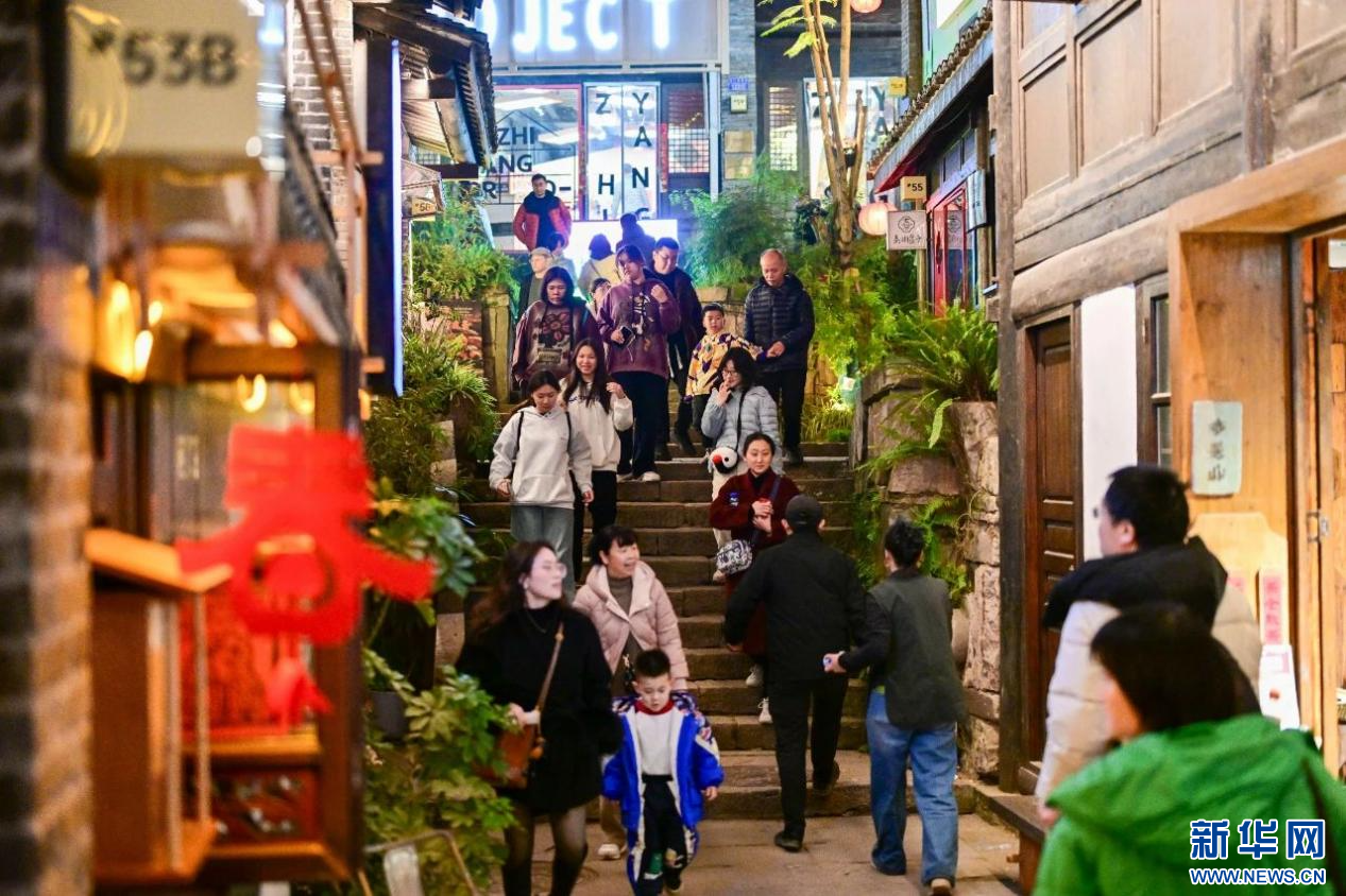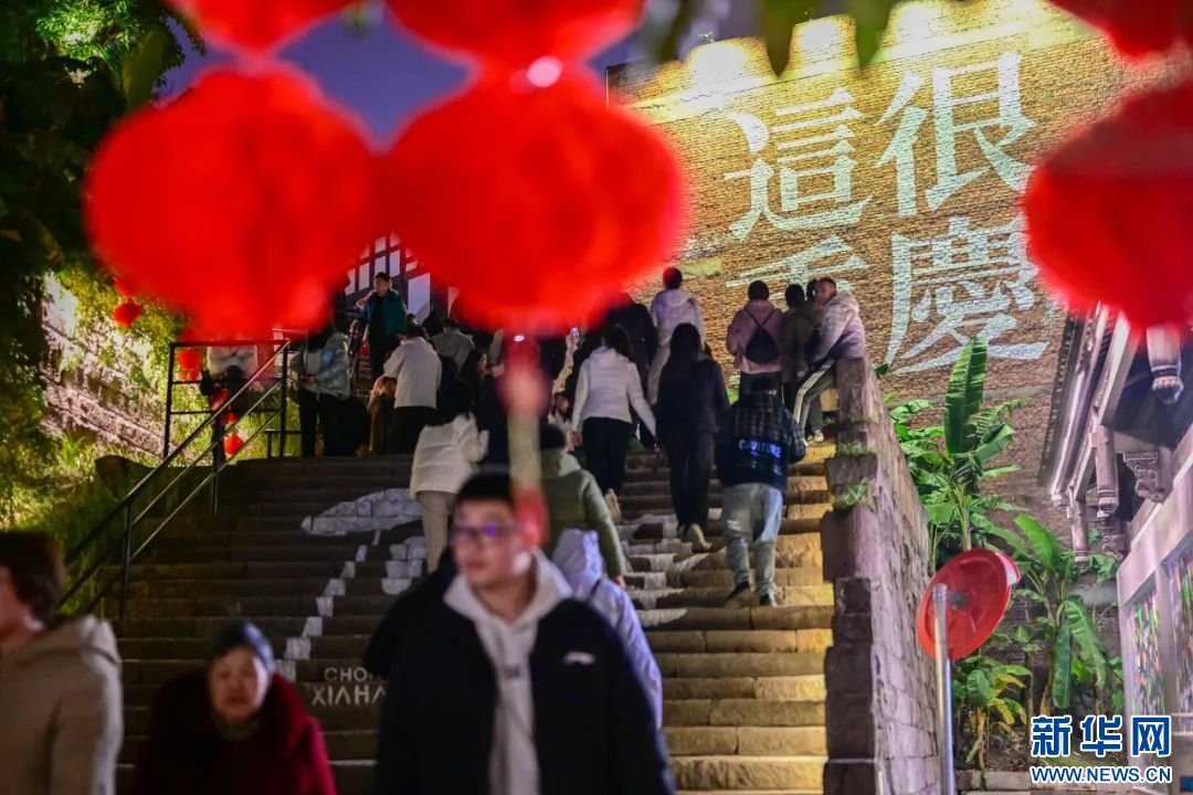老街张灯结彩,新春装饰与山城步道交相辉映。漫步其间,老街新风在此交织成趣。新华网发(郭旭 摄)