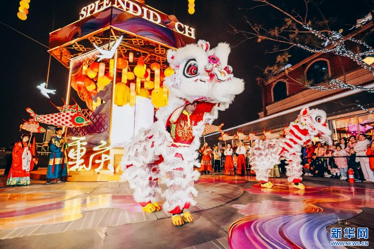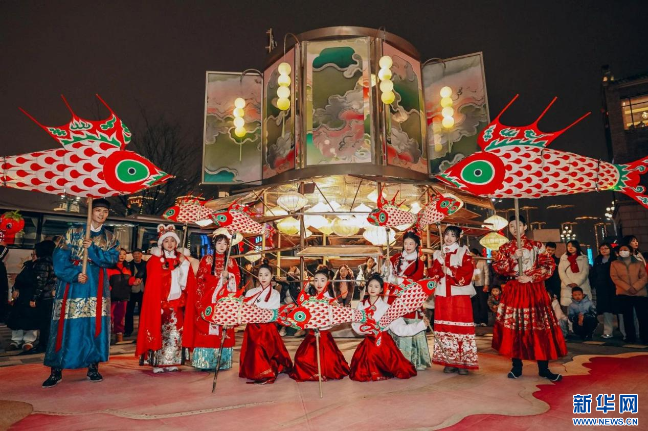 色彩斑斓的鲤鱼灯舞轻盈跃动,寄托了“年年有余”“鲤鱼跳龙门”的新年愿景,让非遗特色“点亮”城市商圈。新华网发(郭旭 摄)