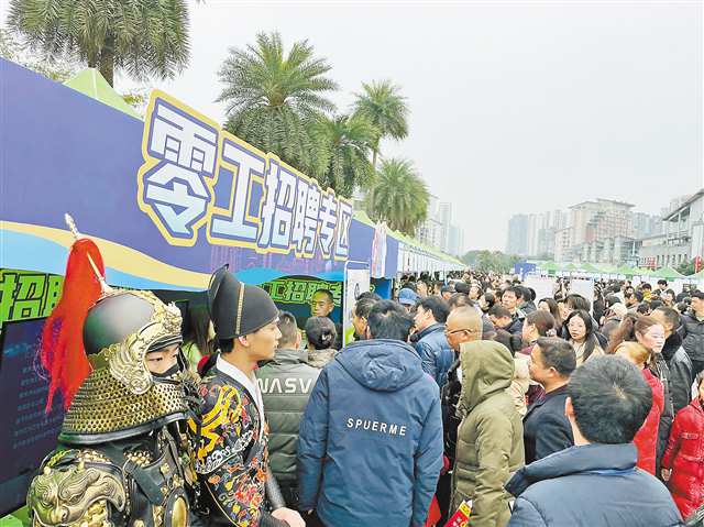 二月五日,永川区“春风行动”大型招聘会现场,群众演员招聘摊位挤满报名人群。记者 周雨 摄\视觉重庆