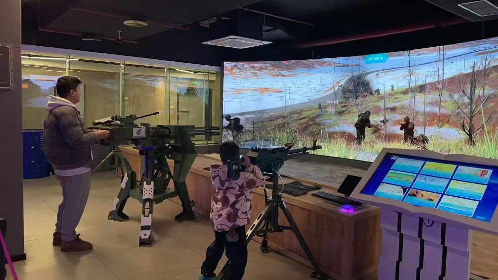 穿梭在数字国防军事体验中心,人们不仅可以通过数字化手段穿越时空与英烈对话,还可以尽情体验模拟射击、战术对抗等军事类活动,感受逼真的射击场景与攻防对抗,享受现代化武器装备的“盛宴”。