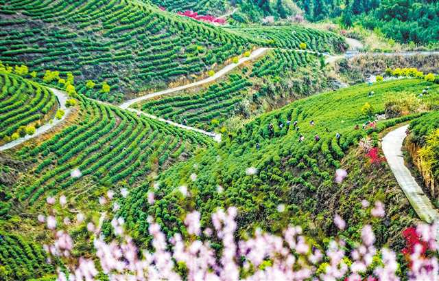 3月30日,南川区兴隆镇金花村白茶基地春意正浓,茶农忙着采摘明前茶,一派丰收忙碌的景象。