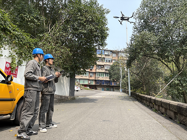 綦江供电中心工作人员在10千伏江绳线开展春季安全用电检查暨森林防火专项巡查。(沈冶萍)