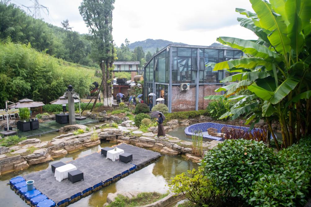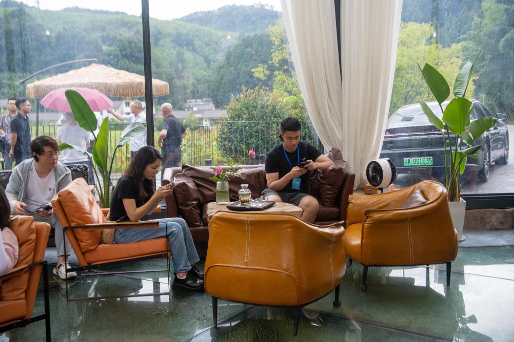 8月15日,人们在竹山镇猎神村一处用矿山用房改造的咖啡馆内休息。