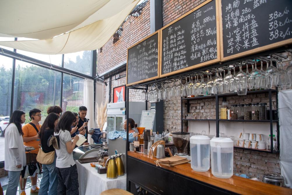 8月15日,在竹山镇猎神村一处用矿山用房改造的咖啡馆内,工作人员在介绍咖啡产品。