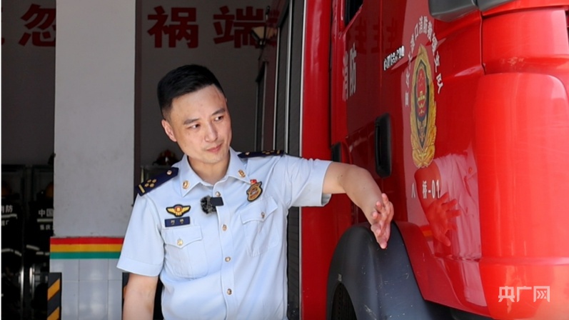 刘娱讲解消防车相关知识(央广网发 杨袖俪 摄)
