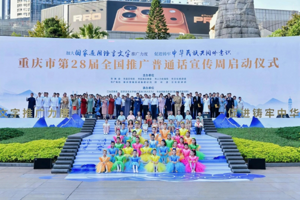 9月14日下午,重庆市第28届全国推广普通话宣传周启动仪式在观音桥广场举行,活动以“加大国家通用语言文字推广力度,促进铸牢中华民族共同体意识”为主题。