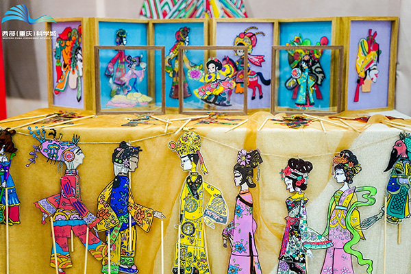 艺术工坊展示区,现场展出的皮影人物活灵活现。