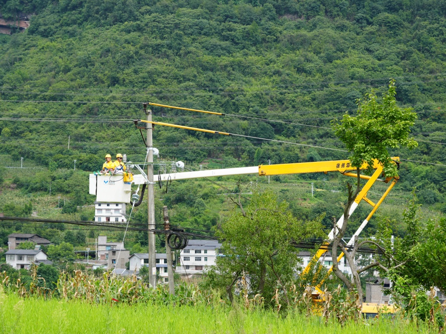 国网重庆綦江供电公司配电运维抢修班员工在10千伏渔清线开展线路检修工作。(宋安鑫 摄)