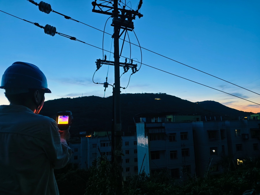 国网重庆綦江供电公司配网运维抢修班员工对10千伏水綦线进行夜间红外测温。(杨泷 摄)