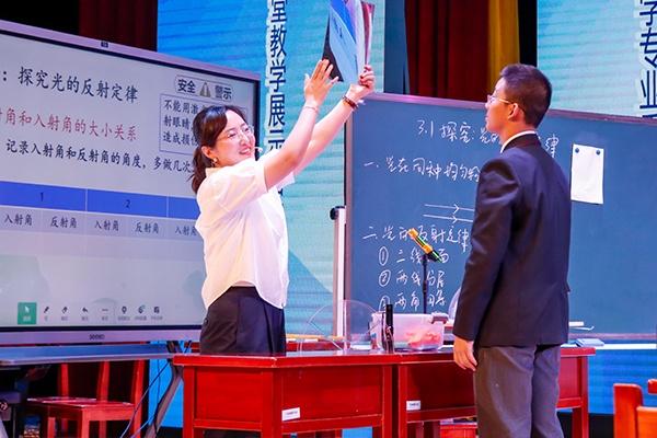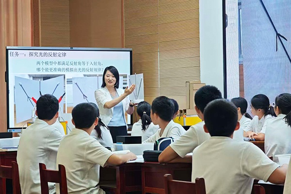 在教学展示中,老师们运用现代教学手段,通过情景导入,活跃课堂氛围;发布任务清单,将知识点由浅入深逐步渗透;布置分组实验,让学生在观察、记录、思考中探究物理规律。不少教师还将科学探究融入真实场景,引导学生解决实际问题,在达成课堂教学目标的同时深化同学们的家国情怀。