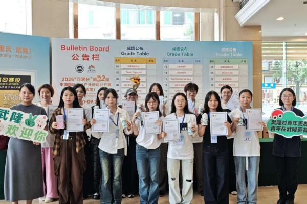 9月17日至23日,2025“问界杯”第20届中国国际山地户外运动公开赛在重庆武隆举办。作为赛事重要支持力量,来自四川外国语大学英语学院和俄语学院的17名“V小青”志愿者为该项国际化赛事提供专业语言保障,展现了川外学子的专业素养和服务地方发展的青春担当。