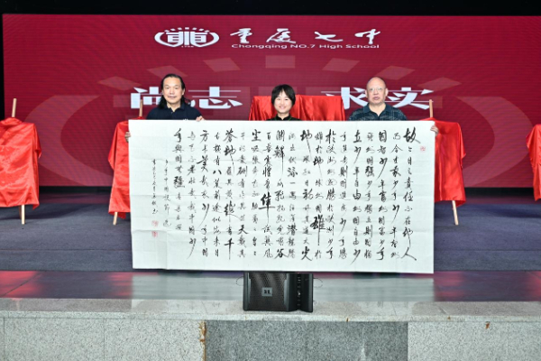 “我被重庆七中悠久的人文历史和独特的教育氛围所深深吸引,创作出七位圣贤雕塑来捐赠,希望用行动诠释对重庆七中的敬重,让圣贤的智慧和精神在七中得以传承和发扬。”重庆市工艺美术大师、重庆市慈善联合总会红陶文化公益基金主任王希军表示,自己被七中“先立乎大,以美育德,曲观其通,全面育人;为未来育人,育未来有用之人,为未来科技育人;老师在幸福中教学,学生在幸福中成长”的教育理念所折服。每尊雕塑都承载着独特的历史和文化,通过传递圣贤们的智慧和精神,希望重庆七中涌现出更多“大国工匠”精神的优秀人才。