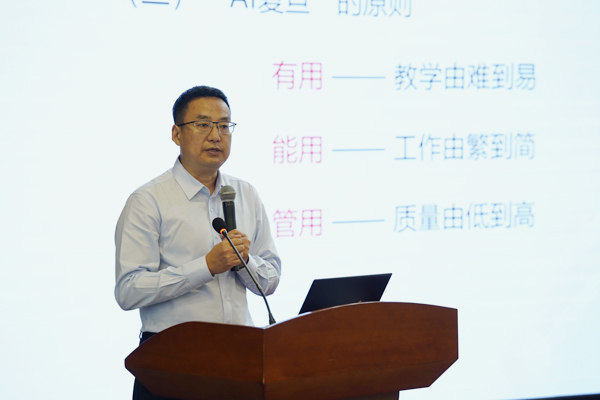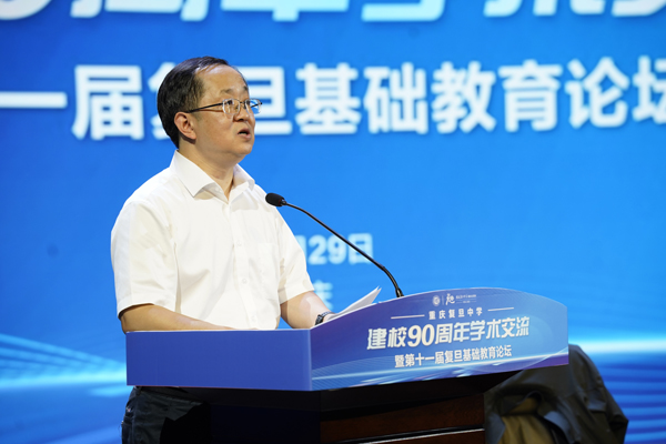 重庆复旦中学校长周鸿蜀分享《从课堂到治理:“AI复旦”的探索与实践》。