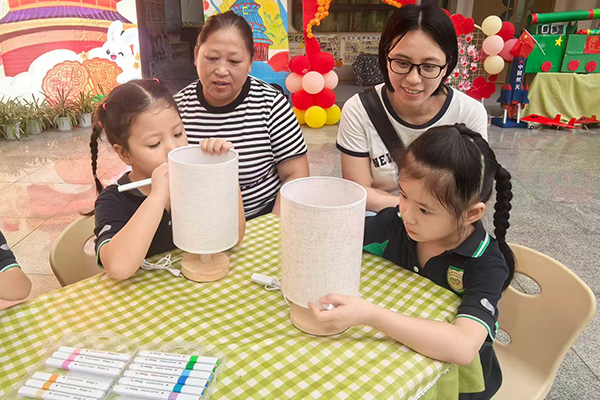 “国庆灯绘”环节,孩子们用画笔描绘心中的家国画卷。